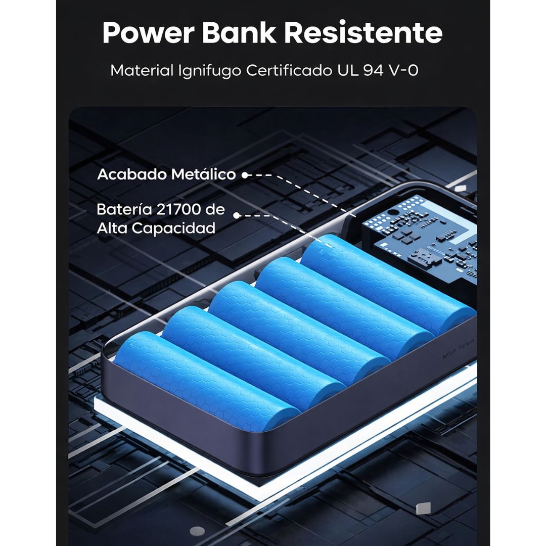 - Recarga bidireccional de hasta 65W, permitiendo cargar la batería externa rápidamente mientras sigues usando tus dispositivos.